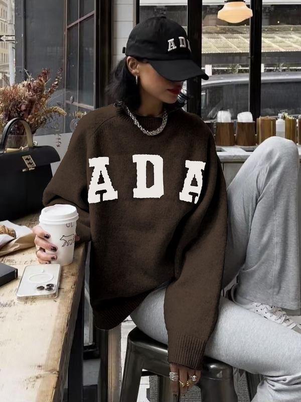 Women's Long Sleeve Knit Sweater, Loose-Fitting Round Neck Pullover, Soft Comfortable Elegant Casual Fashion Top for Fall & Winter