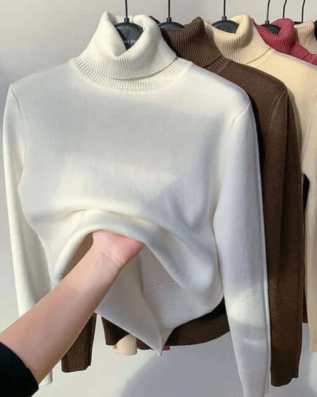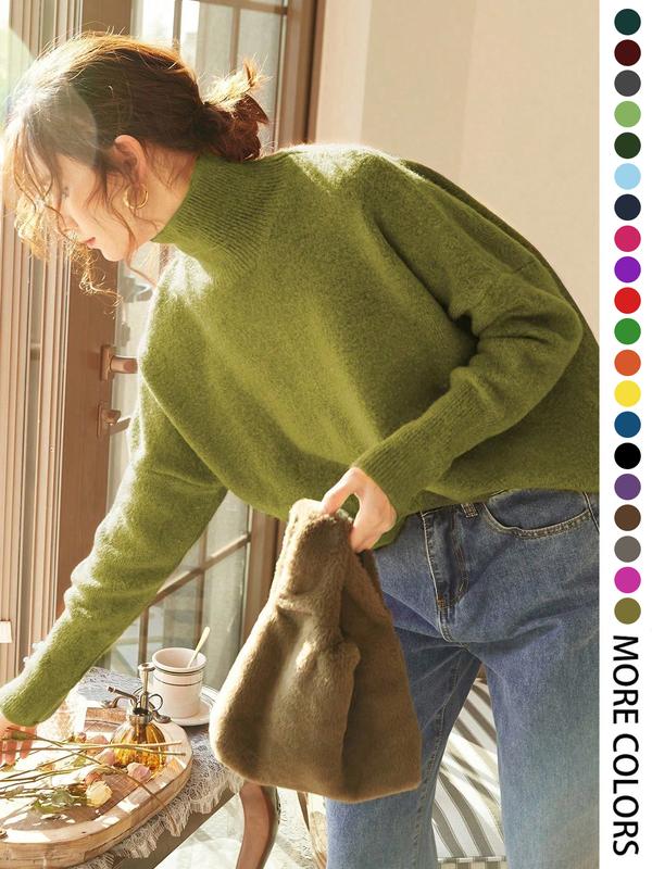 Autumn Winter Women's Knit Sweater High Neck Loose Casual French Style Elegant Simple Solid Color Pullover Long Sleeve Top