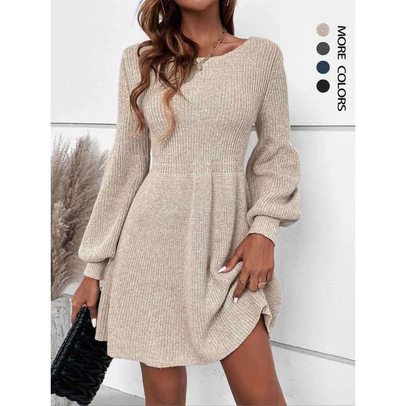 Women's Plain Lantern Sleeve Sweater Dress, Casual Long Sleeve Round Neck A Line Dress for Fall & Winter, Women's Knitwear for Daily Wear