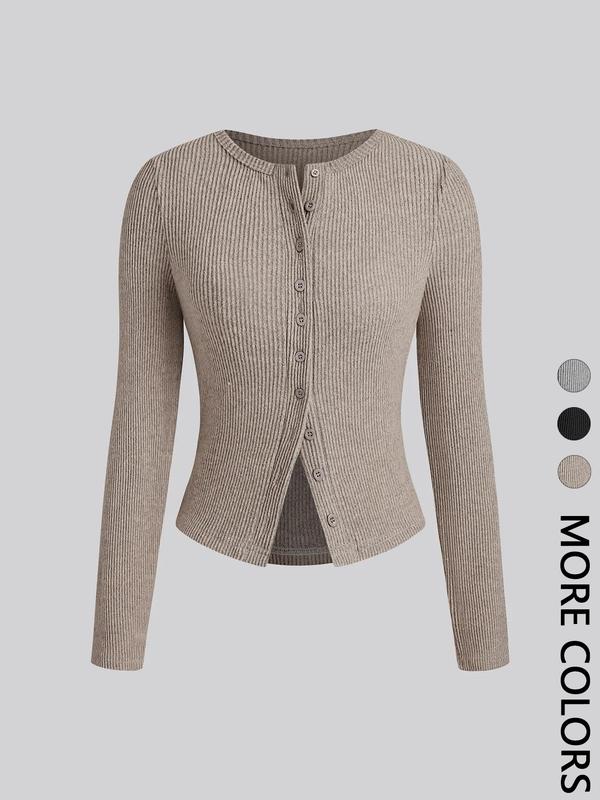 Women's Casual Slim-Fit Long Sleeve Top, Plain Round Neck Shirt for Fall & Winter, Fashionable Moderate Fabric Women's Clothing