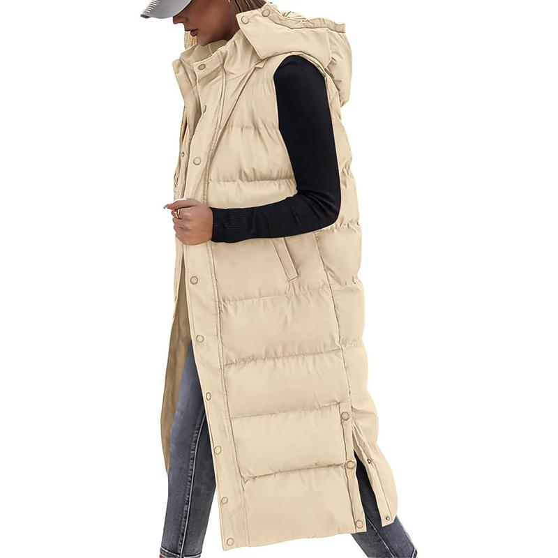 Women's Long Puffer Vest with Quilted Hood and Button Down Closure for Winter Coat 2025 - Tops, Womenswear