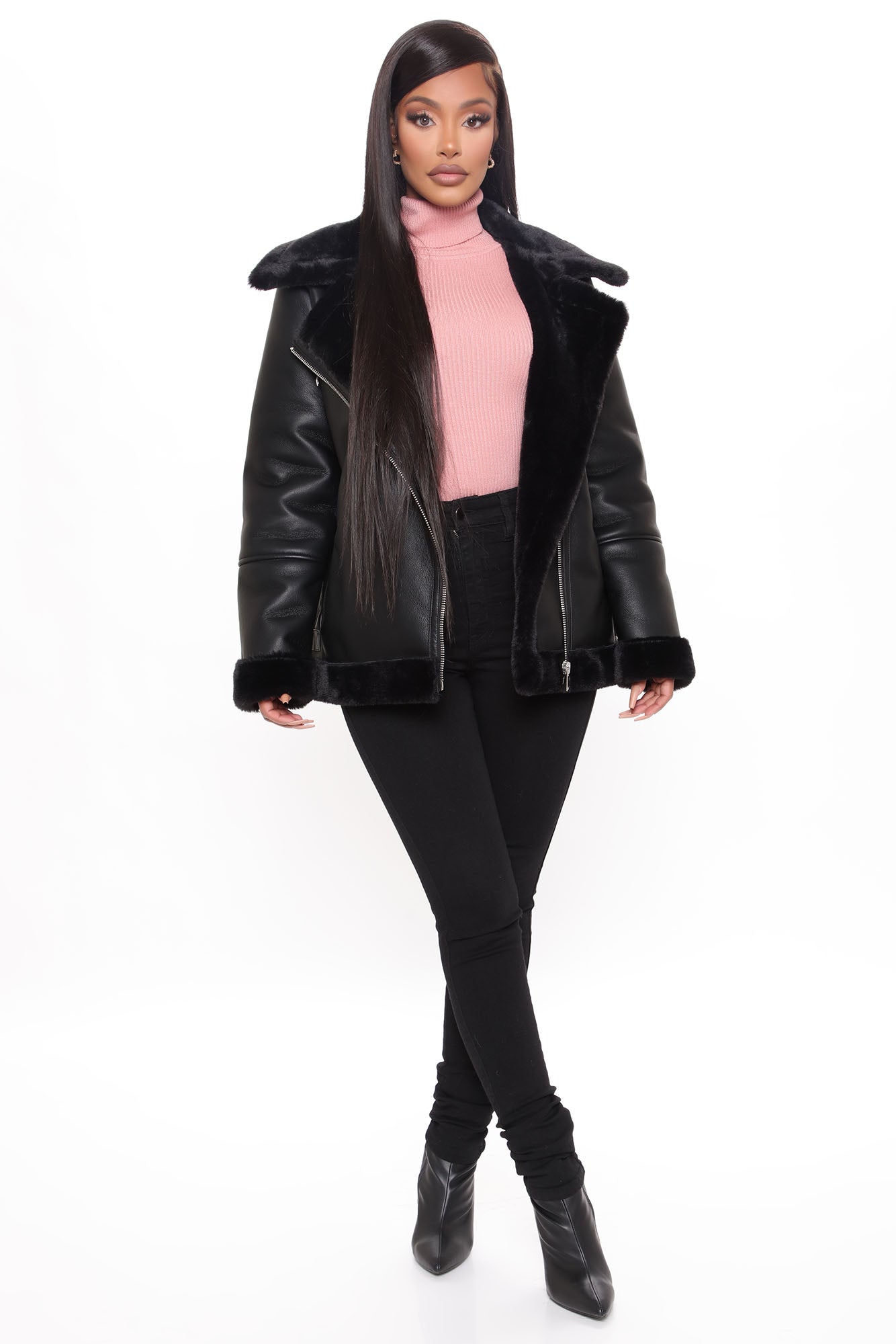 Available In Black, Burgundy And Stone.Faux Leather JacketFur TrimBoxy Moto Style FitFront ZipperFunctional Zipper PocketsLinedSelf: 100% Polyurethane CoatingLining: 100% PolyesterImported