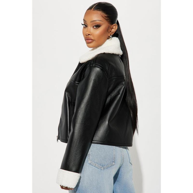 ·Available In Black And Pink.·Bomber Jacket·Faux Leather·Fitted·Fur Lined·Zipper Front·Shearling·Shell/Coating: 100% Polyurethane·Backing/Faux Fur: 100% Polyester·Imported California Proposition 65 WARNING: Cancer and Reproductive Harm - www.P65Warnings.ca.gov.