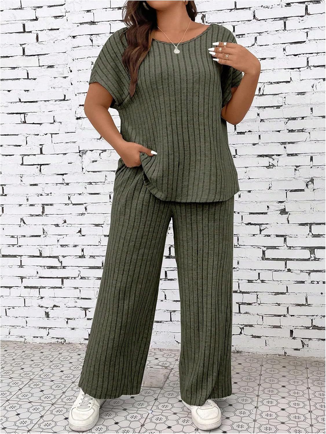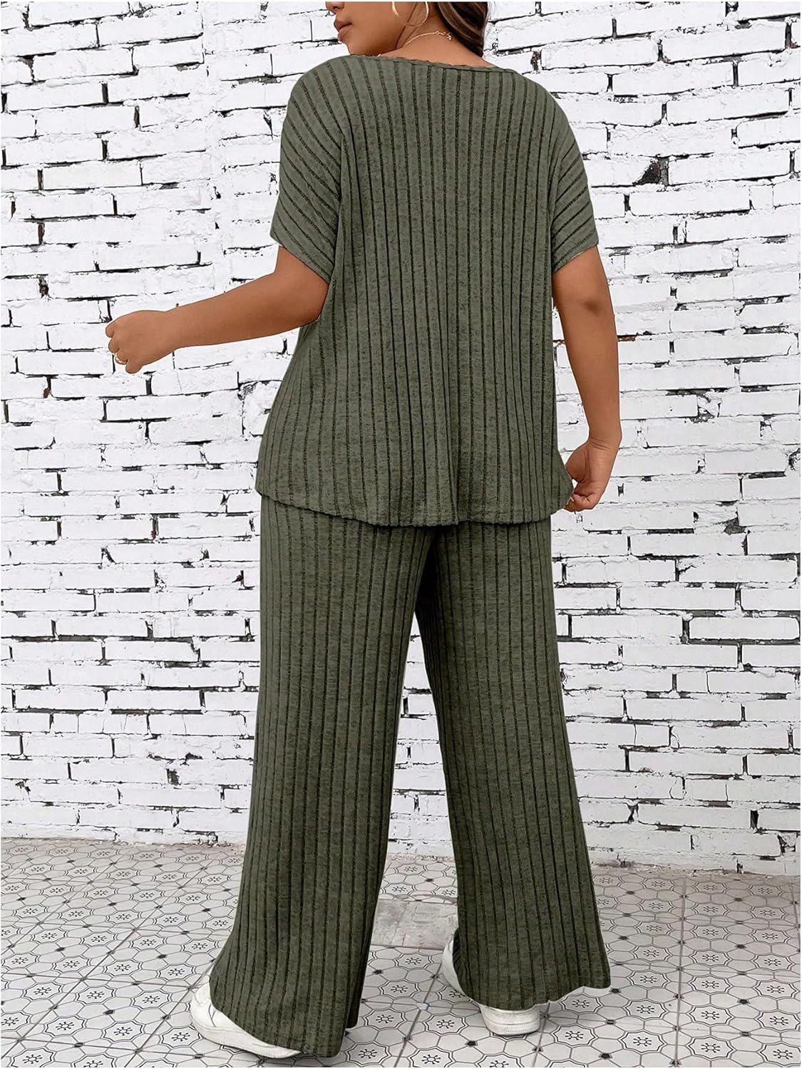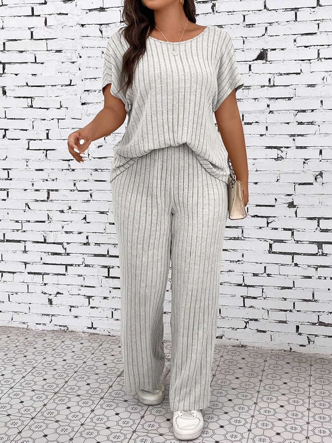 ·【Stylish Two-Piece Set】: This set includes a top and pants, both with a ribbed texture, for a chic and modern look.
