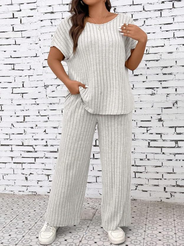 Floerns Women's Plus Size Short Sleeve T Shirt Wide Leg Pants 2 Piece