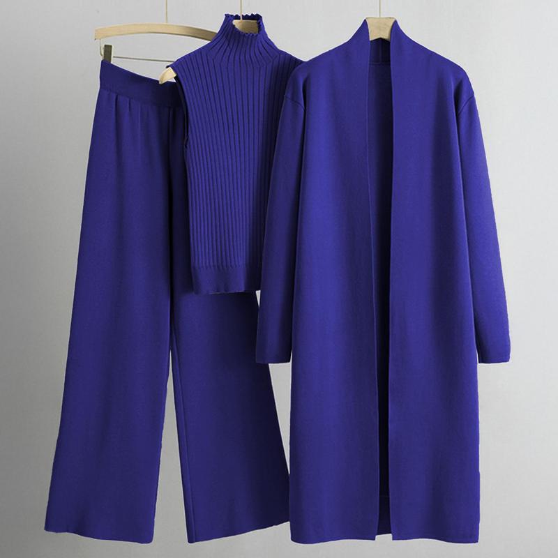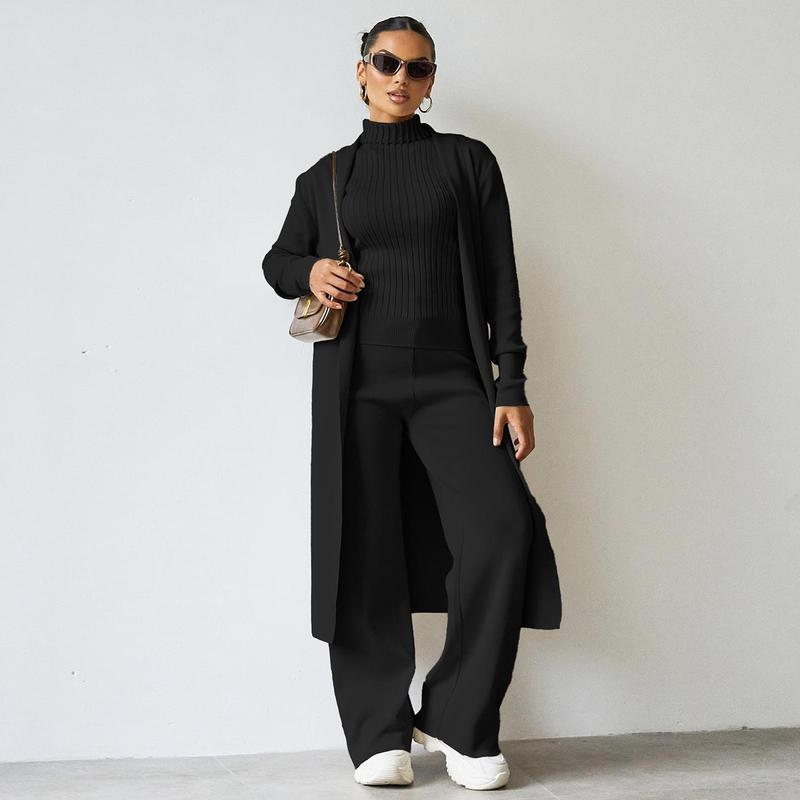 KatchMe Women's Three-Piece Set Solid Turtle Neck Tank Top & Wide Leg Trousers & Open Front Long Cardigan Set, Women Clothes for Fall & WinterKatchMe Women's Three-Piece Set Solid Turtle Neck Tank Top & Wide Leg Trousers & Open Front Long Cardigan Set, Women Clothes for Fall & Winter