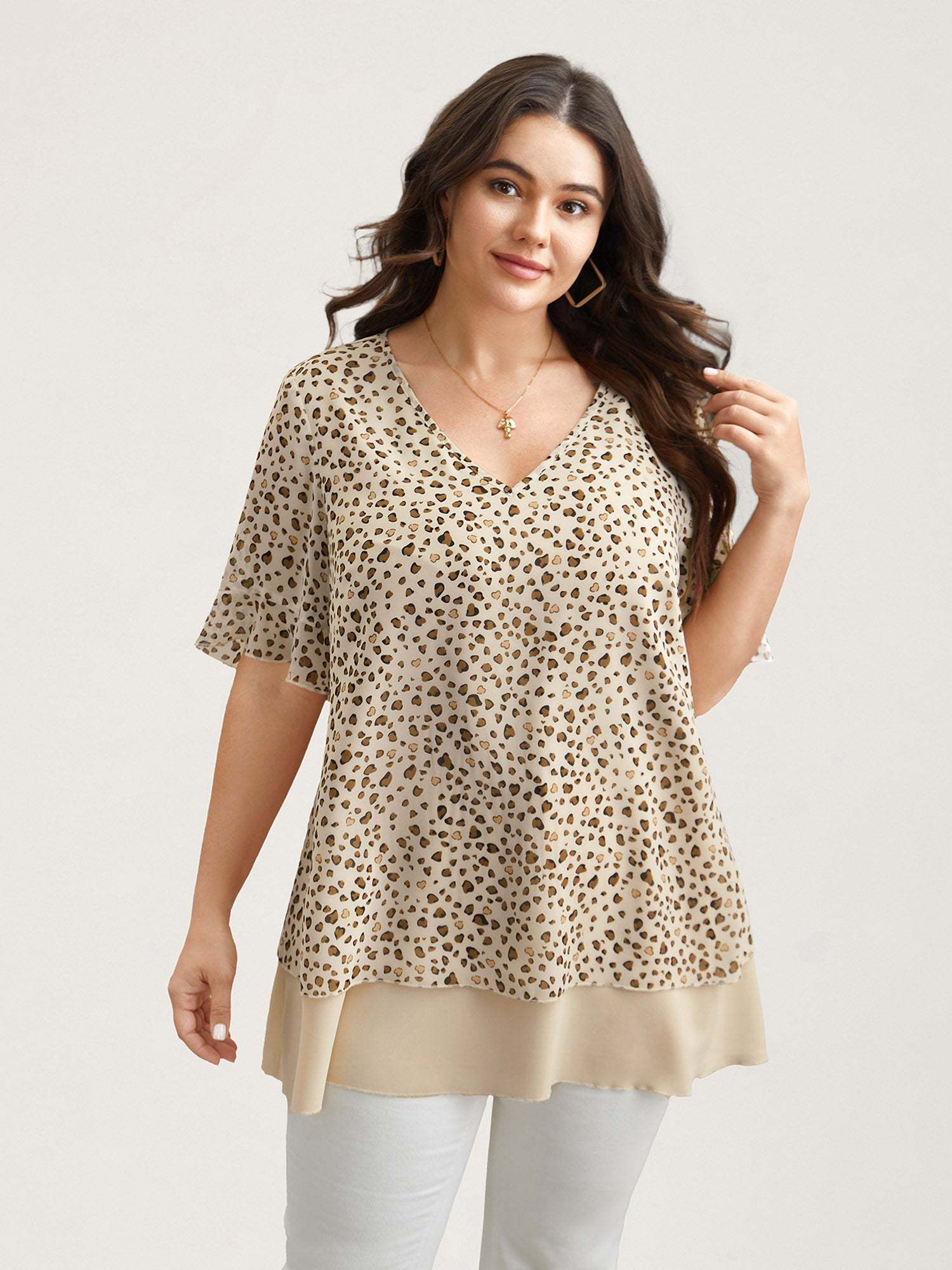 Polka Dot Print Ruffled V-Neck Layered Shirt