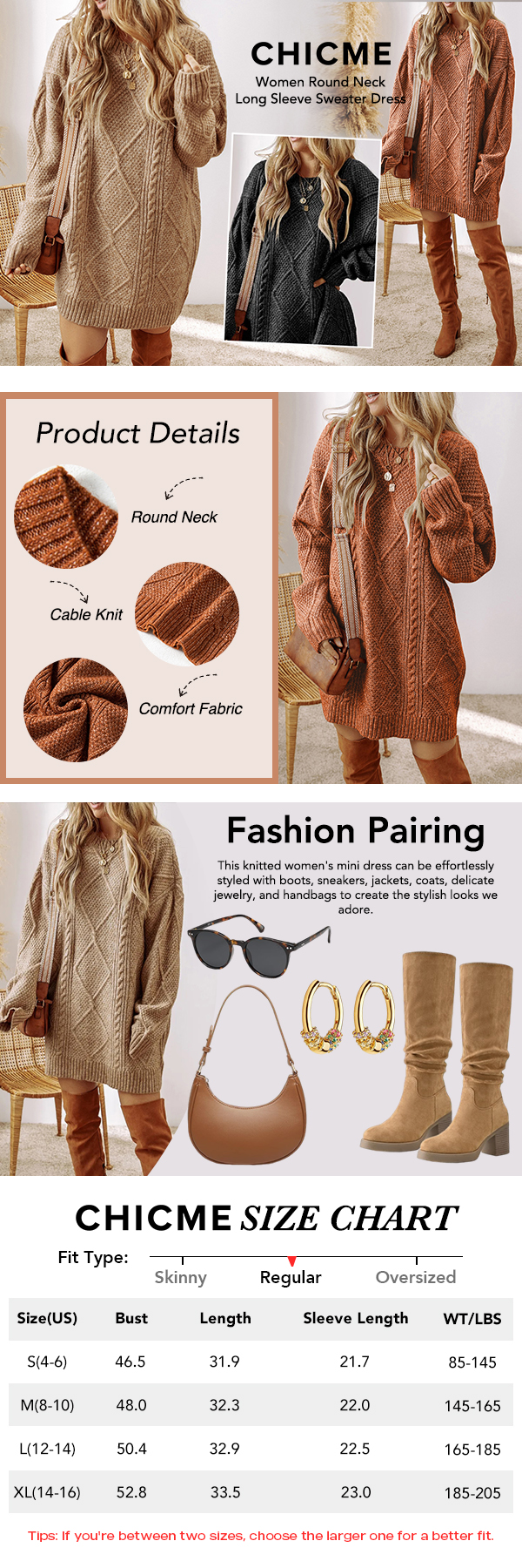 Styling & Pairing Wear alone as a sweater dress with boots for an effortless chic vibe, or layer over leggings or tights for added warmth in cooler seasons.