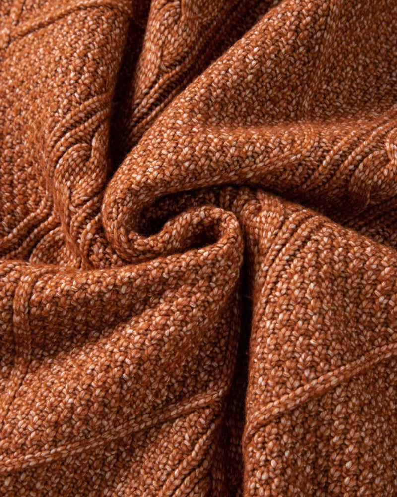 Design Details Classic round neckline and cable knit pattern add timeless texture; ribbed cuffs and hem finish ensure durability and maintain shape.