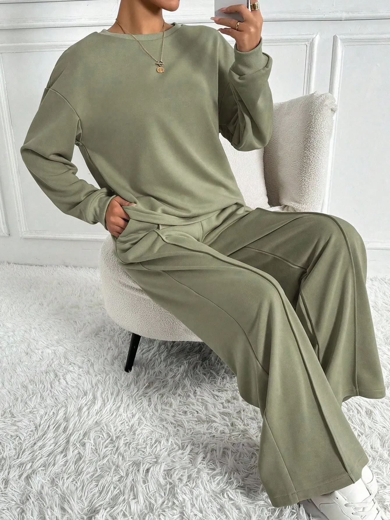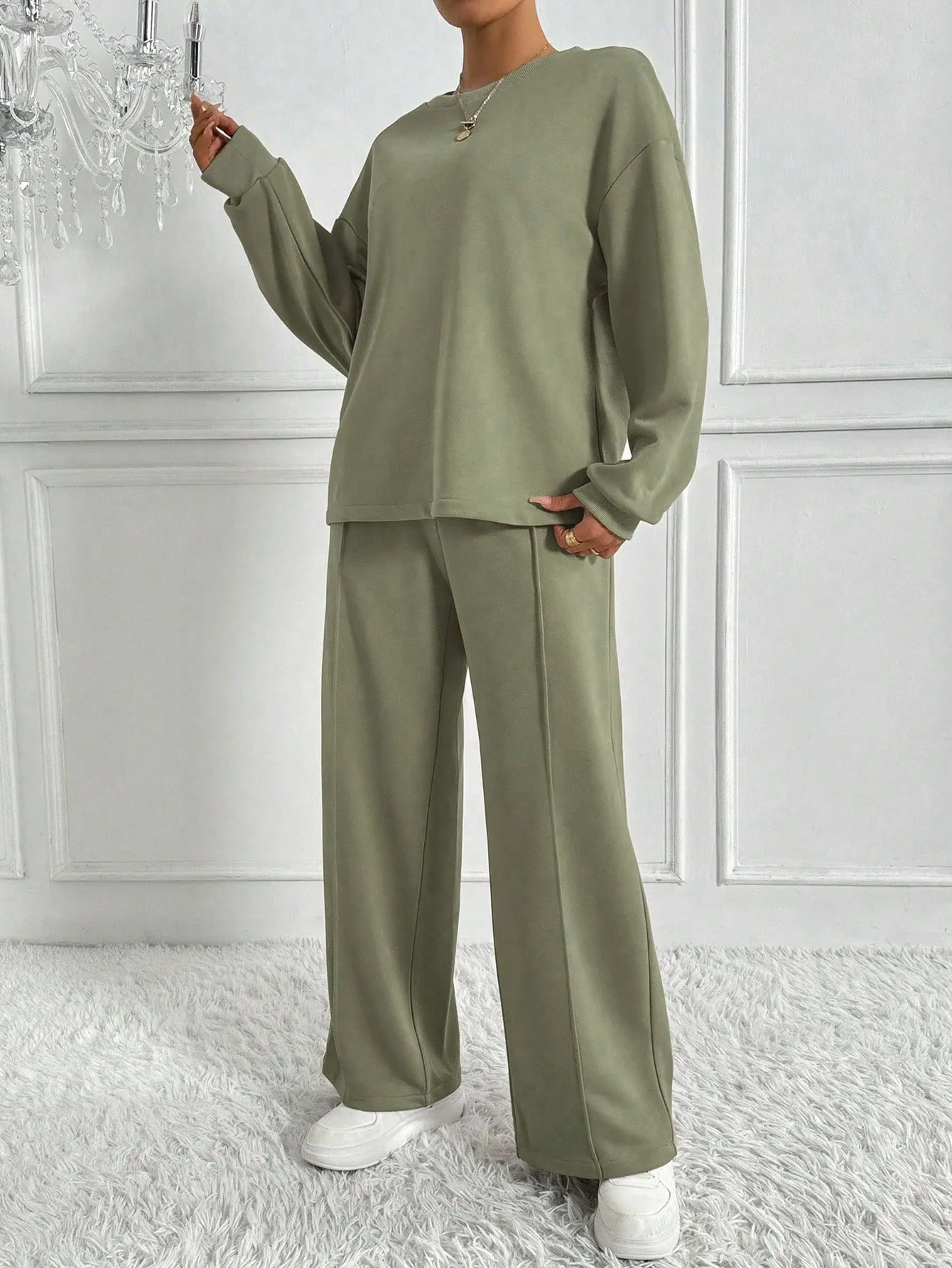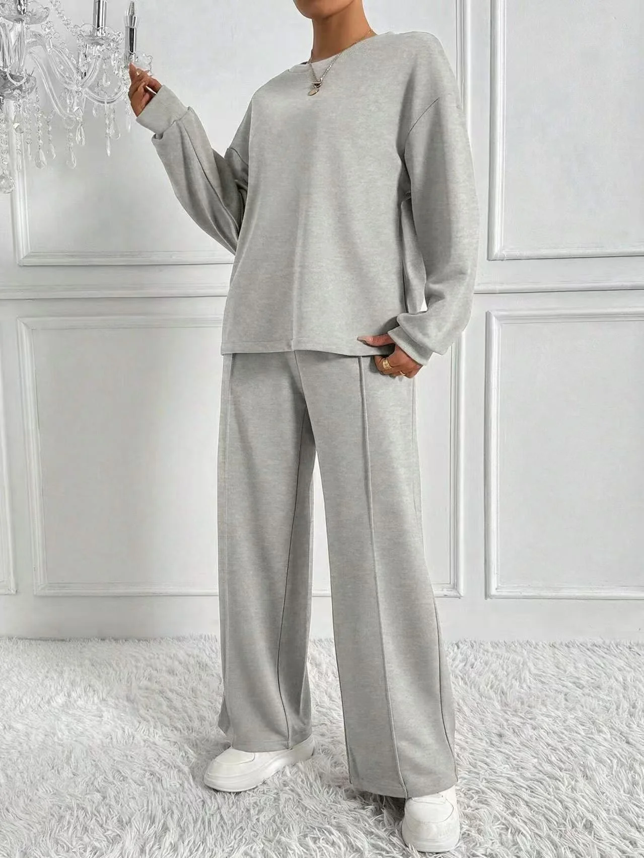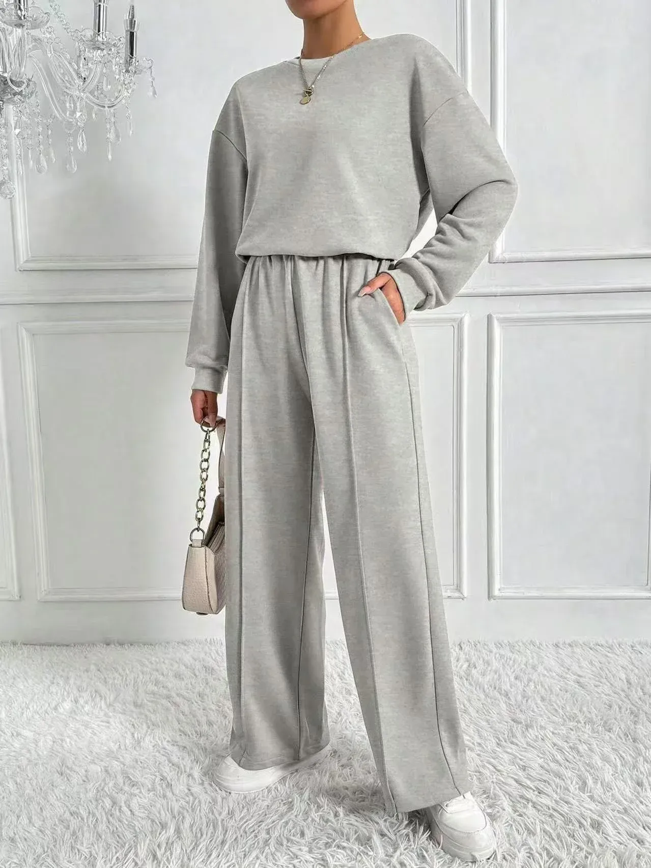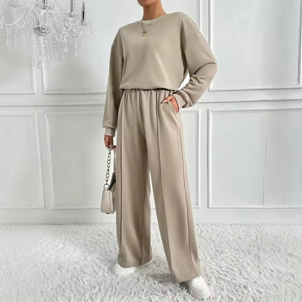This Women's Casual Two-Piece Set is a perfect combination of comfort and style. Featuring a long sleeve crew neck top and matching pants, this set is made from a soft polyester blend with added elastane for stretch and flexibility. The breathable fabric ensures comfort, while the stretchy material provides a flattering, easy fit. Whether you're lounging at home or out for casual errands, this versatile set is ideal for everyday wear. Plus, it's machine washable for hassle-free maintenance.