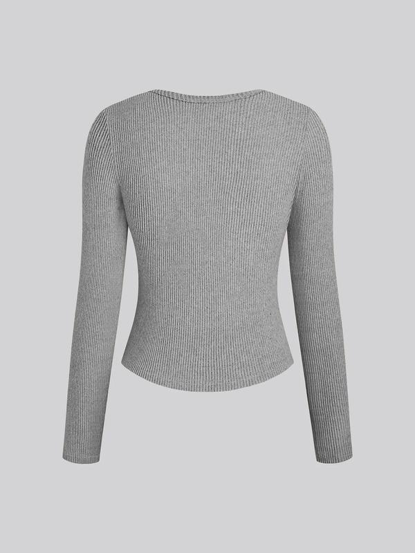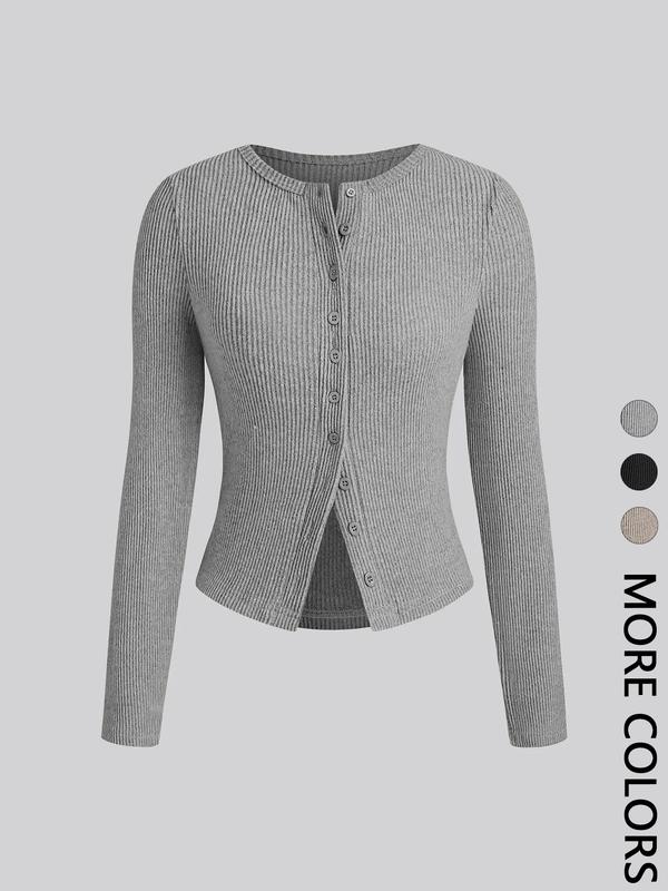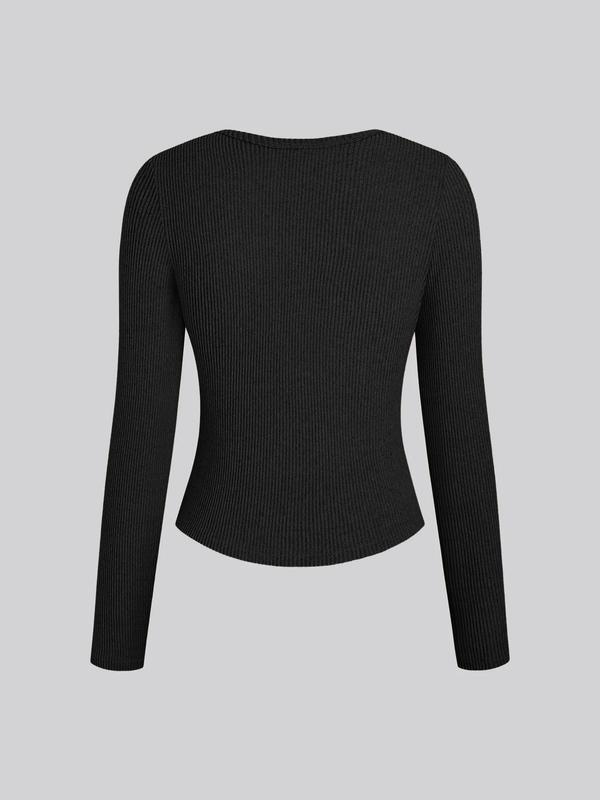Women's Casual Slim-Fit Long Sleeve Top, Plain Round Neck Shirt for Fall & Winter, Fashionable Moderate Fabric Women's Clothing
