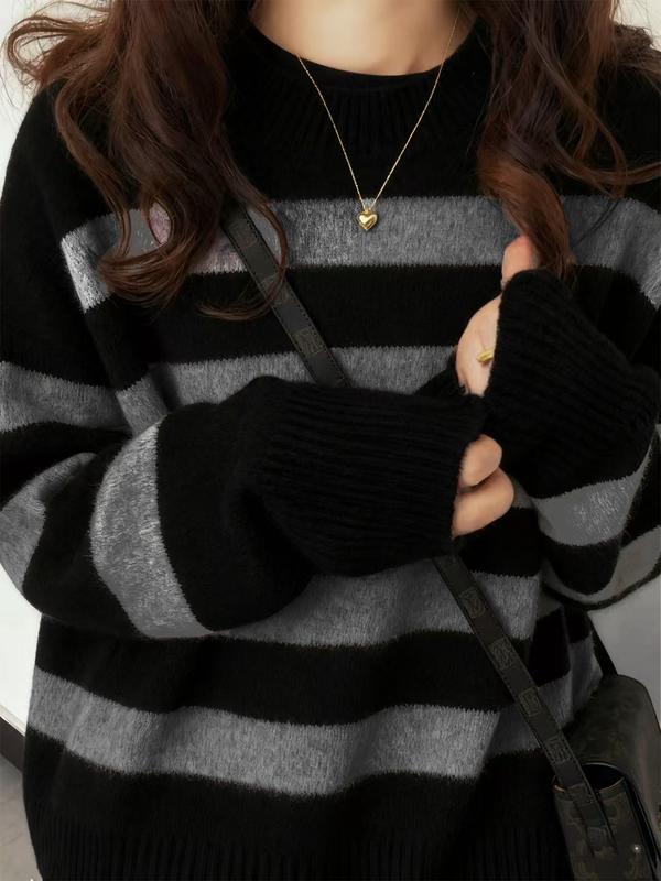 Women's Solid Drop Shoulder Long Sleeve Sweater Pullover, Casual Fit Fashion Round Neck Jumper for Fall & Winter, Women's Knitwear for Daily Wear