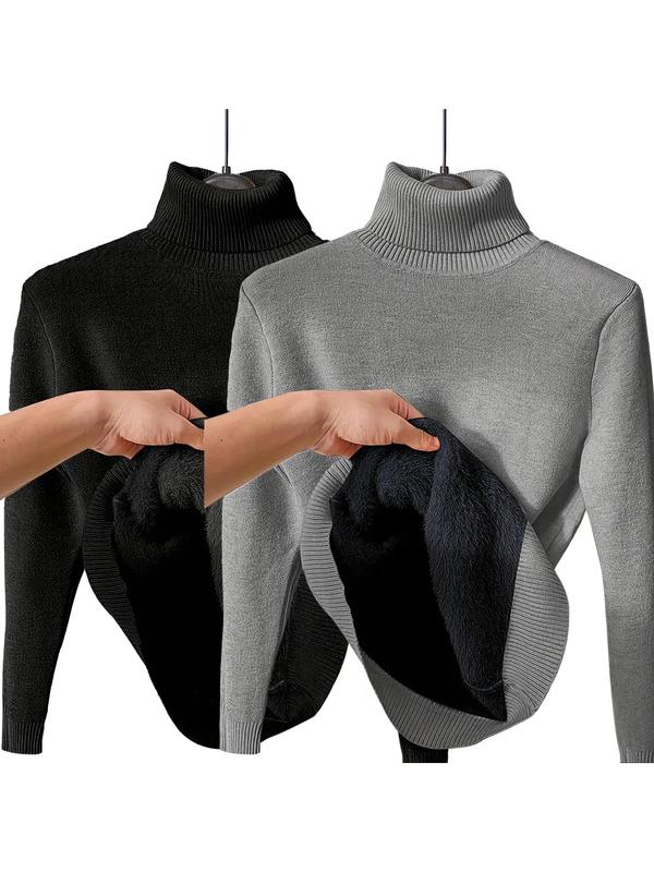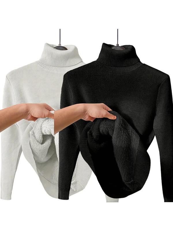 Women's Solid Thermal Lined Drop Shoulder High Neck Sweater, Casual Solid Long Sleeve Jumper For Daily Outdoor Wear, Women Knit Top for Fall & Winter