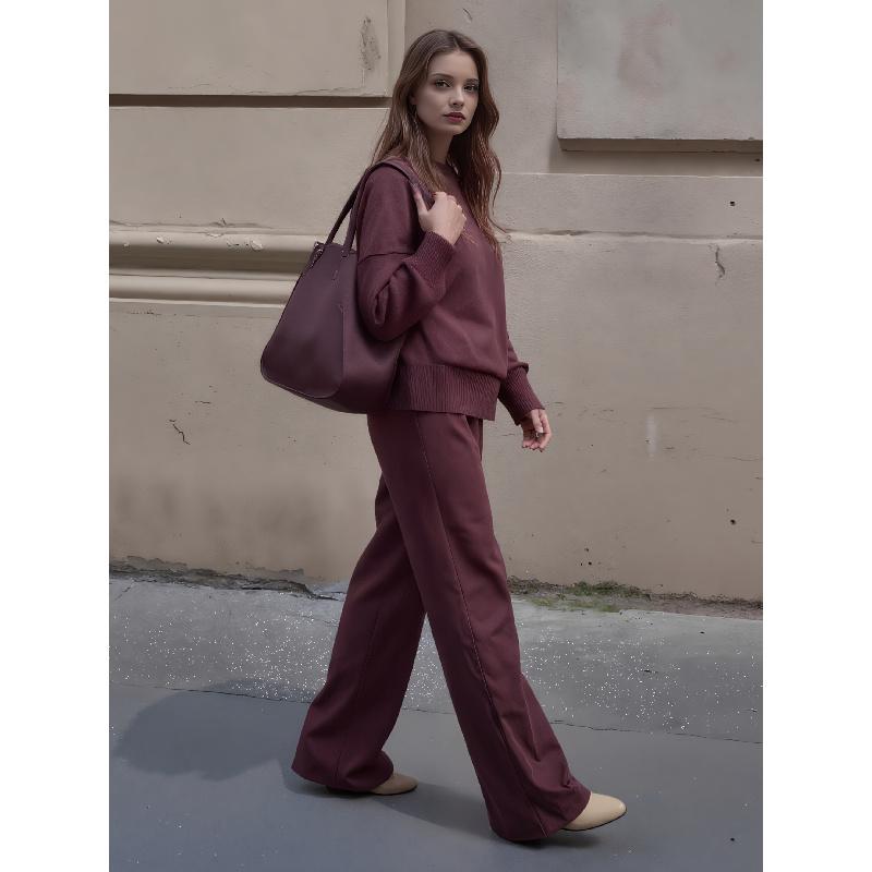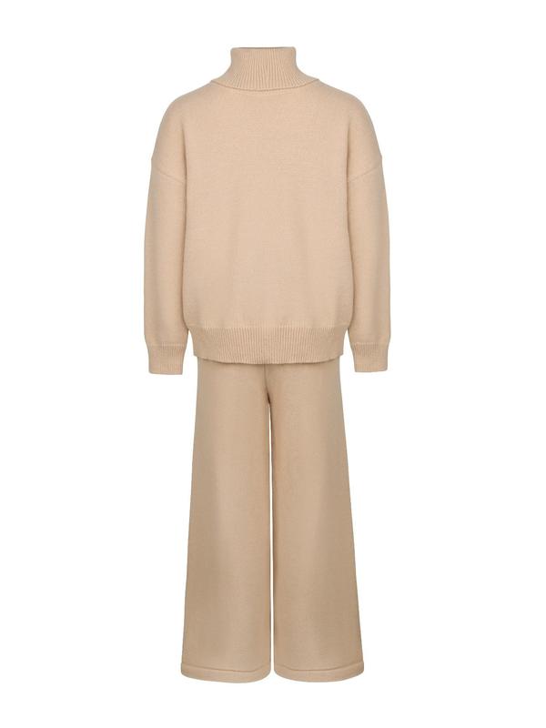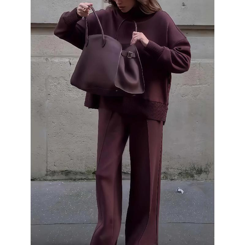 Women's Solid Turtleneck Tops & Wide Leg Pants Set, Casual Fashionable Cozy Long Sleeve Top & Trousers for Daily Casual Occasion Wear, Fall Clothes, 2 Piece Set, Women's Clothing for Fall, Downtown Girl Clothes