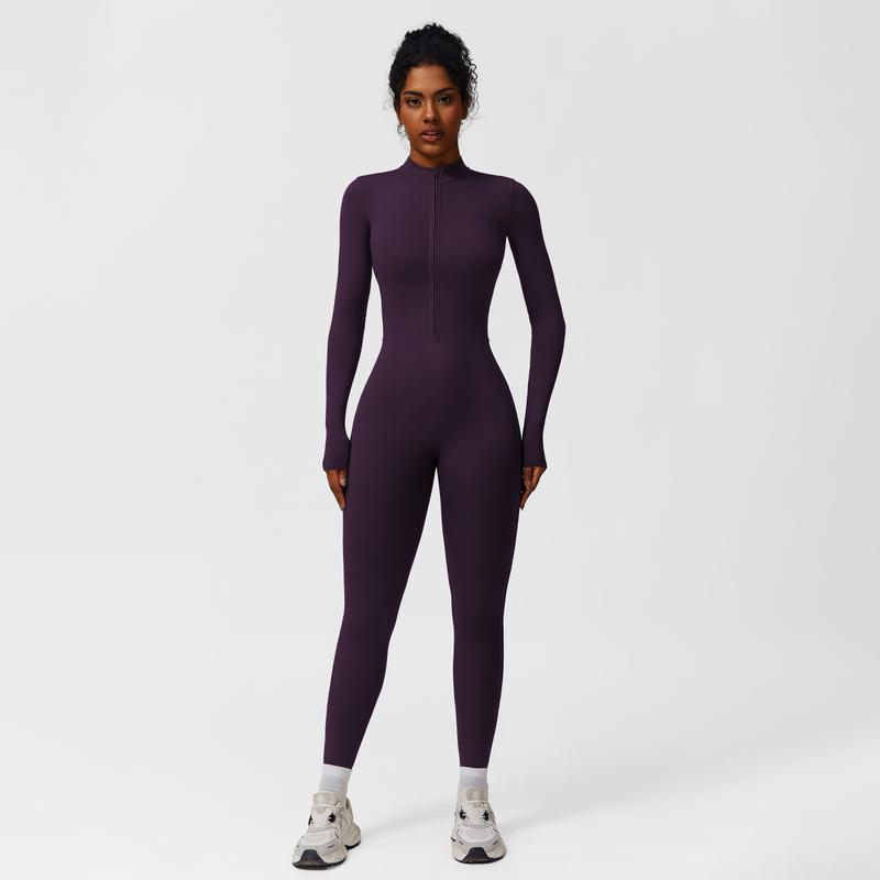 Women's Solid Zip-Up Skiing Jumpsuit by MFVIM - Casual Sporty Long-Sleeve Jumpsuit for Skiing and Cycling, Ladies' Activewear for Fall and Winter Workout Gym Clothing