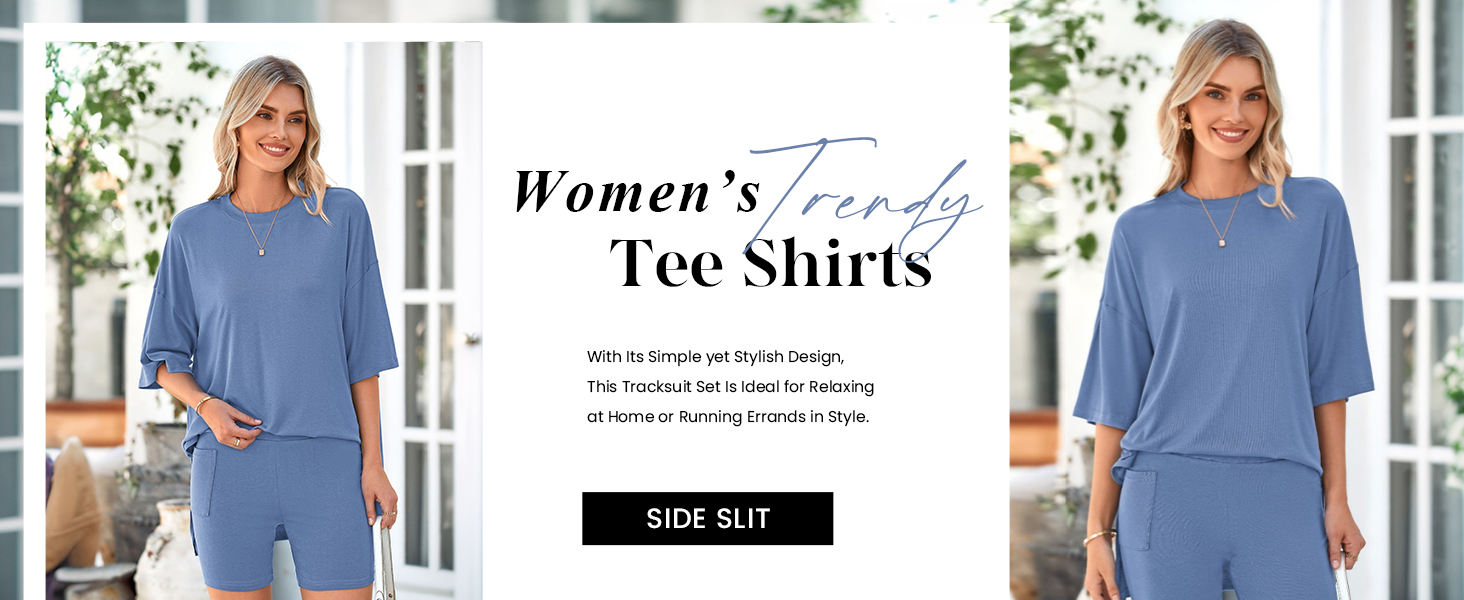 • Chic Design: Two Piece Outfits; High Waisted Biker Shorts Set; Oversized Tee Shirts; High Low Shirts; Side Split Top; Short Sleeve Tunic Top; Workout Shorts with Pockets; Lounge Outfits for Women Soft Comfy; Pajamas Set