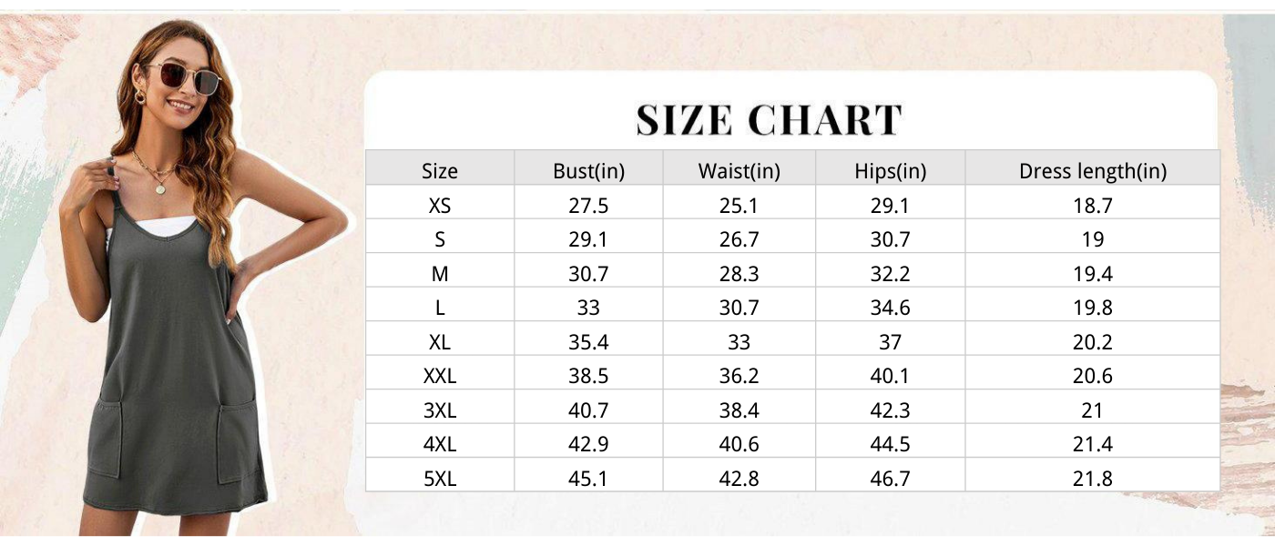 • Design: Racerback, V-neck/scoop neck, spaghetti straps, 2 front patch pockets, built-in shorts liner